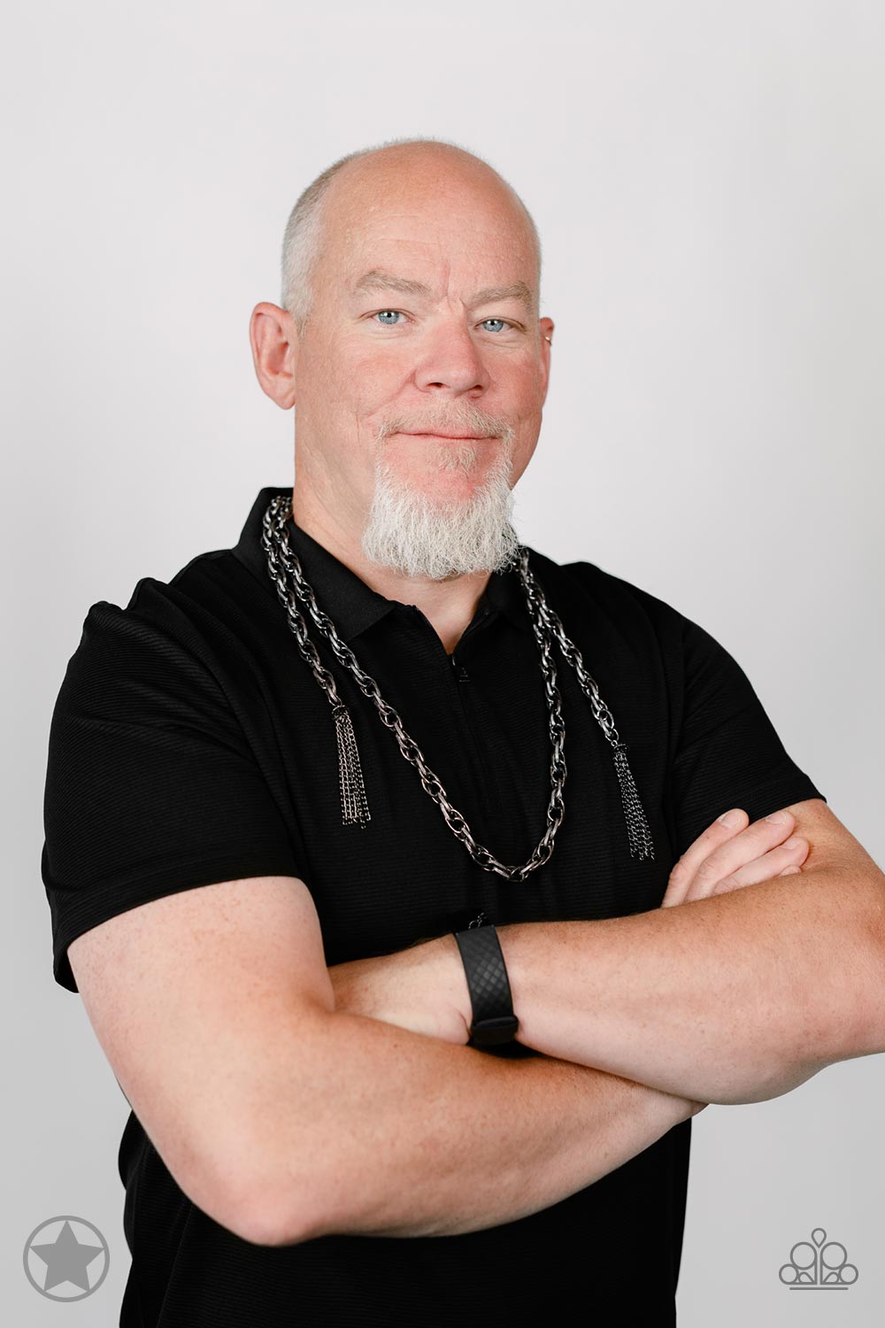 A single strand of spiraling, interlocking links with light-catching texture is anchored by two tassels of chain that add dramatic length to the piece. Undeniably the most versatile piece in Paparazzi's history, the scarf necklace features FIVE different ways to accessorize: Open Layer, Loop, Traditional Wrap, Double Knot, and Nautical Knot.